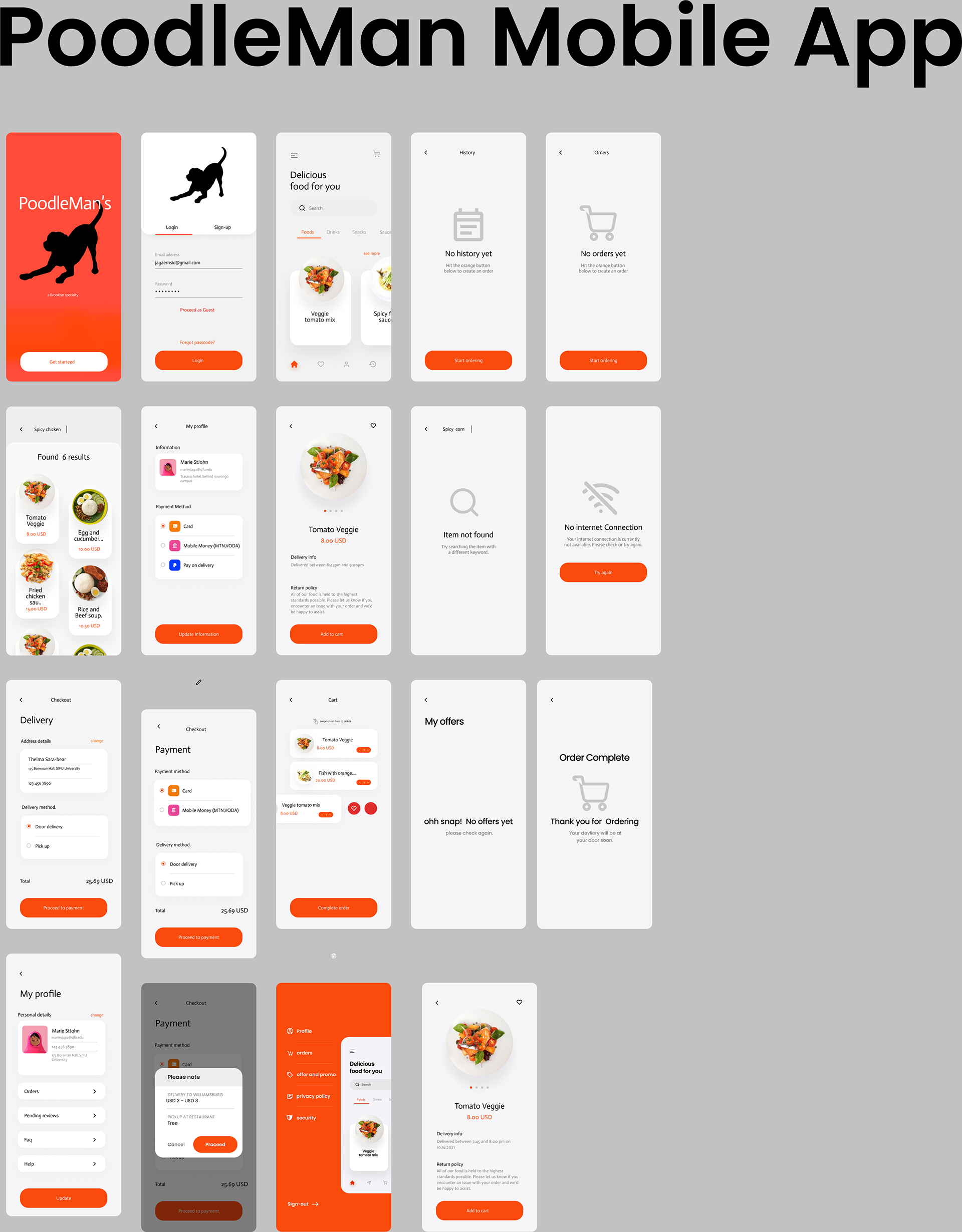 Overall, the goal for this design was to create a simple and fast way for people of the community to order food from a locally-owned restaurant. I believe that through market research and comparison with other restaurant apps, PoodleMan's mobile app allows for the intended use to show through and be successful.